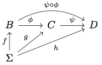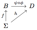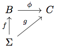 Oh, and the diagram needs to commute! That is, if we follow \(f\) and then \(\phi\), we need to get to “the same place” as if we had just followed \(g\).